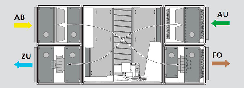 Doch wie gelangt die gekühlte Luft anschließend in den Innenraum? Dafür sorgen RadiPac-Radialventilatoren von ebm-papst. Diese besitzen ein sehr robustes und vibrationsarmes Hochleistungslaufrad, das hohen Gegendrücken standhält. Außerdem sind die RadiPac mit GreenTech EC-Motoren ausgestattet. Dadurch haben sie bei geringem Strombedarf einen besonders hohen Wirkungsgrad. So eignen sich die RadiPac perfekt für den Einsatz in den RLT-Anlagen von NOVA. Zum einen wegen der Gegendrücke, die der Wärmeaustausch erzeugt. Und zum anderen wegen des umweltschonenden Kühlkonzepts, das hinter der Ka2O-Technologie steckt.