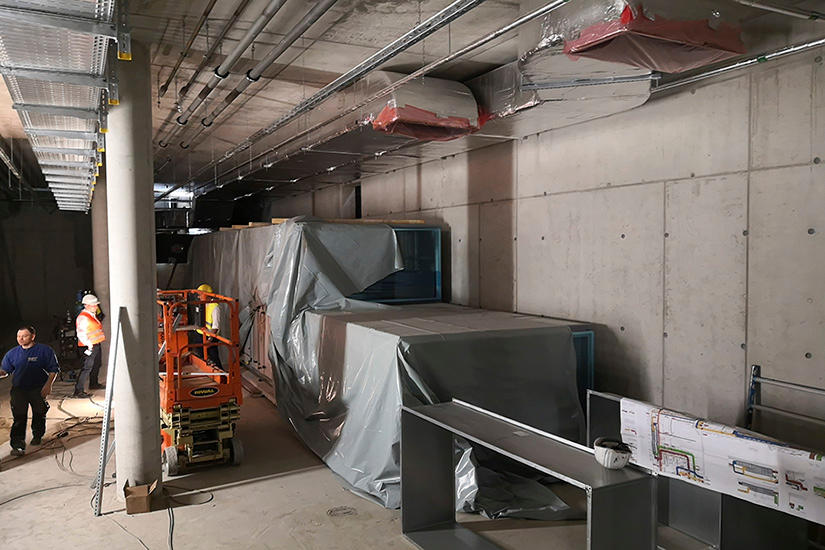 Das Besondere an den eingesetzten RLT-Anlagen ist die Ka2O-Technologie – eine Kühlmethode basierend auf der indirekten Verdunstungskühlung. Dabei wird die verbrauchte Luft aus dem Innenraum angesaugt und mit kleinen Sprühdüsen befeuchtet. Das Wasser verdunstet und entzieht der Abluft Wärme. Das geschieht in den Ka2O-Gegenstrom-Wärmetauschern. Dort wird die angesaugte warme Außenluft durch die kalte Abluft heruntergekühlt, ohne sich mit ihr zu vermischen. Zum Schluss wird die Außenluft noch gefiltert und in den Innenraum geleitet.