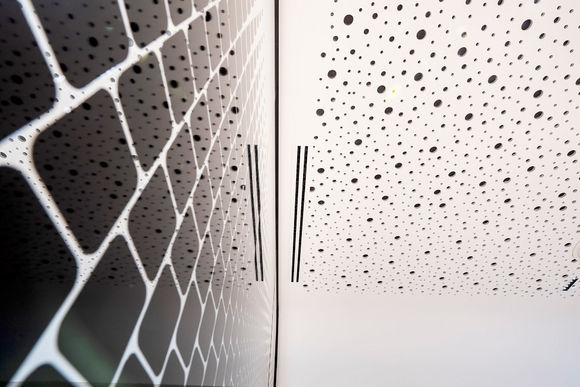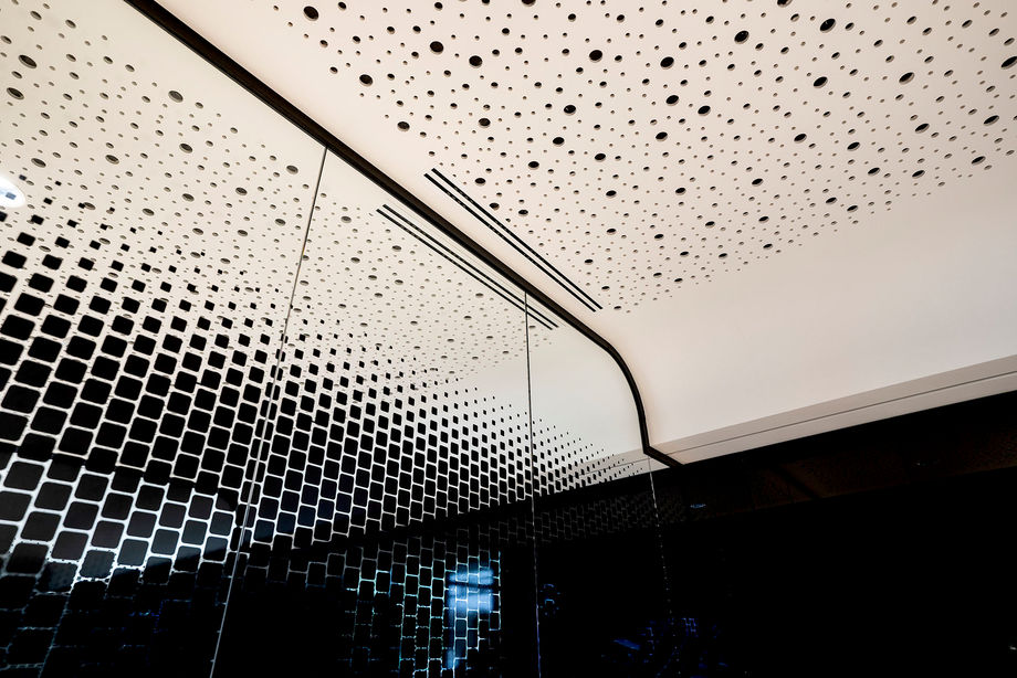 Dezent in die Kühldecke integriert sind Schlitzdurchlässe SAL35 von Kampmann. Der Durchlass ist mit einer innovativen Luftlenkwalze ausgestattet, welche stufenlos die Luftaustrittsgeschwindigkeit und den Volumenstrom regelt. Der filigrane SAL35 lässt sich mehrreihig ausführen und zu beliebig langen Schlitzbändern zusammenfügen.