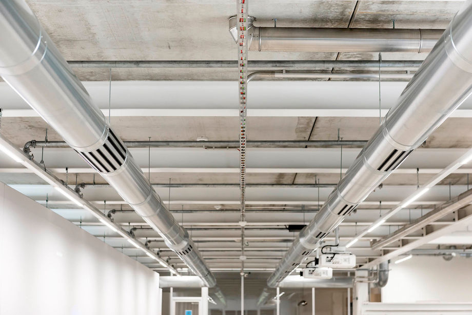 Um ein angenehmes Raumklima zu erzeugen, muss auch Frischluft eingebracht werden. Das geschieht in Lichtenfels mittels Rundrohrdurchlässen RRA und Wirbelkammer-Dralldurchlässen WKD von Kampmann. Während die RRA in ihrem schlichten, aber edlen Äußeren hervorragend auch als innenarchitektonisches Element in öffentlichen Bereichen dienen können, sind die WKD mit ihrer integrierten Weitwurfdüse besonders für hohe Decken in Hallen geeignet.