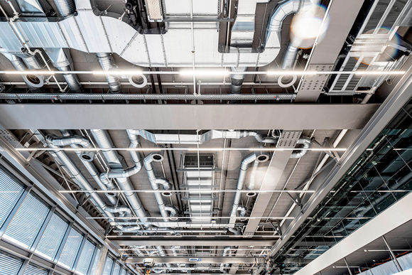 Ein Gebäude von 421 Metern Länge und 22 Metern Höhe: Das sind die Dimensionen, die nötig sind, um Concept Laser zu beherbergen, ein Unternehmen, das sich der Entwicklung und Herstellung von 3D-Druck-Maschinen verschrieben hat. Das Besondere: Concept Laser (das zu GE Additive gehört) druckt mit Metall. Damit ist das im Jahr 2000 gegründete Unternehmen ein Vorreiter im Bereich des pulverbettbasierten Laserschmelzens von Metallen. Neben der gewaltigen Produktionshalle ist auch ein hochmodernes Verwaltungsgebäude mit 20.000 Quadratmeter Fläche entstanden, das neben Open Space Offices auch ein Betriebsrestaurant, ein Auditorium, Labore und einen Showroom beinhaltet. Die Geräte zur Klimatisierung des Gebäudes druckte Concept Laser aber nicht selbst, sondern bezog sie bei Kampmann.