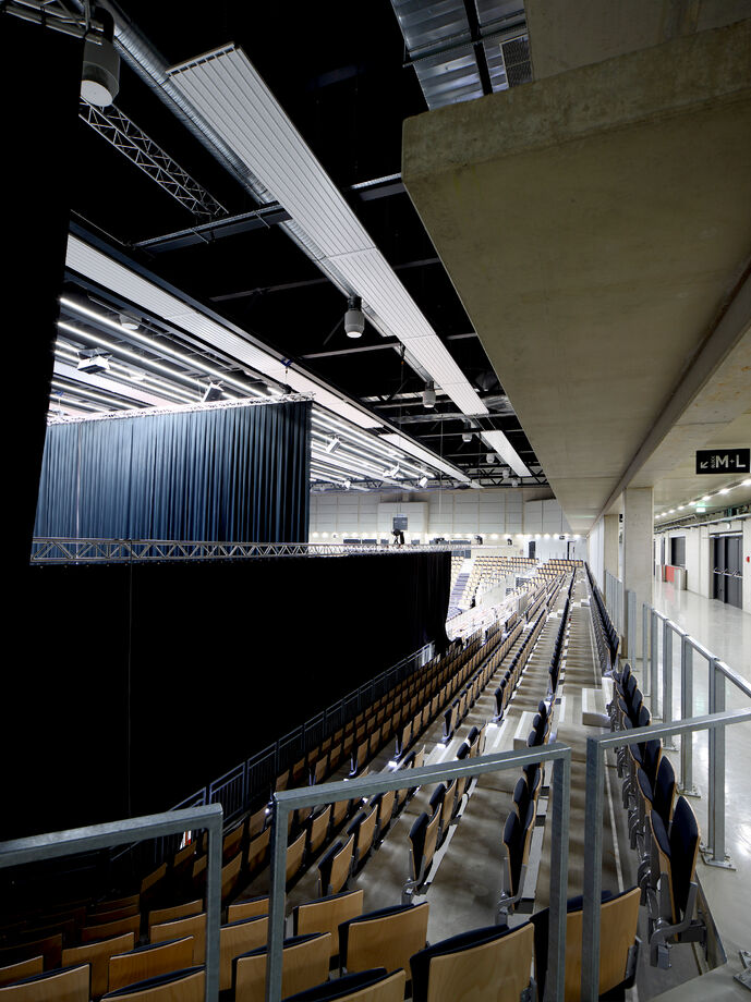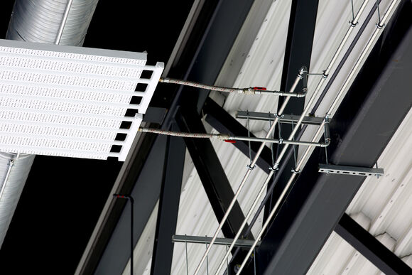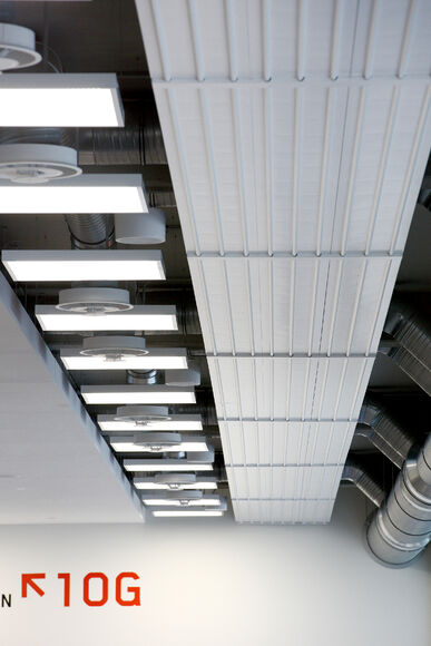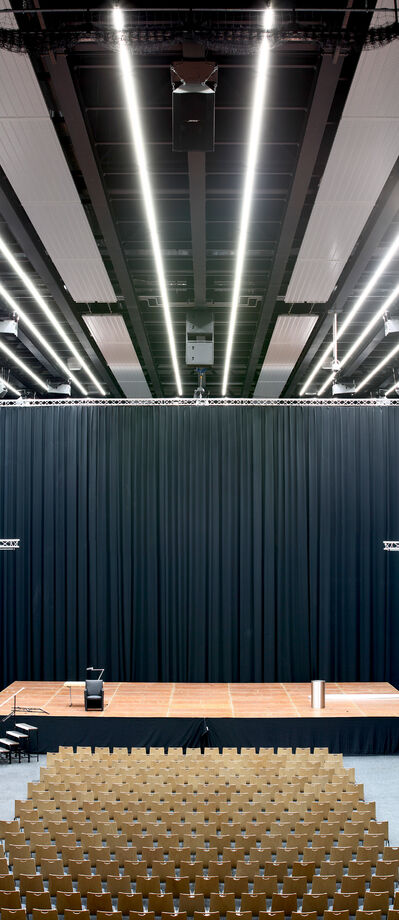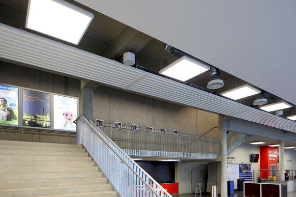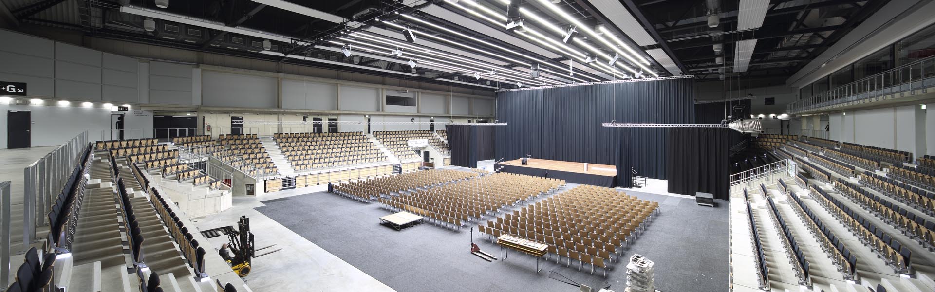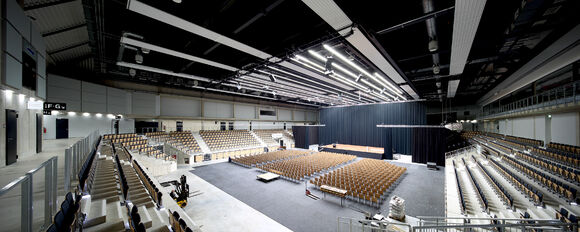 Die EmslandArena gilt als eines der Leuchtturmprojekte für das Emsland. Als Multifunktionshalle konzipiert, bietet der Neubau den perfekten Rahmen für Konzerte, Messen, Sportevents, Tagungen – kurz für Veranstaltungen jeglicher Art und jeden Zuschnitts. Eine Temperierung mit niedrigen Betriebskosten erfolgt in der EmslandArena in erster Linie durch insgesamt rund 420 laufende Meter Galaxis Deckenstrahlplatten. Unabhängig von der Lüftungsanlage erzeugen sie im Foyer und in der Veranstaltungshalle dank Strahlungswärme ein äußerst angenehmes Klima. Durch die gelochte Ausführung der Deckenstrahlplatten für die Veranstaltungshalle kann der auftretende Schallpegel verringert und die Nachhallzeit verkürzt werden.