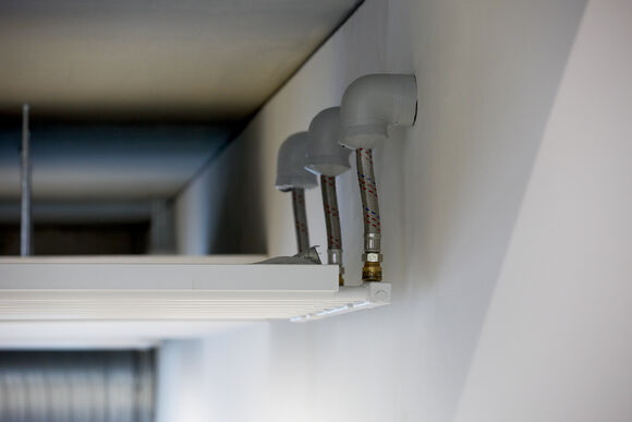 Die Beheizung der eigenen Kampmann-Loge in der EmslandArena übernimmt ein stahlverzinkter Kampmann-Konvektor. Dieser ist unsichtbar hinter der Wandverkleidung der Sitzbank montiert, welche nach oben offen ist. Über natürliche Konvektion verteilt sich die warme Luft zugfrei in der Loge. Die Regelung erfolgt über KaControl. Ein KaController Raumbediengerät ermöglicht die intuitive Bedienung über ein großflächiges Display.