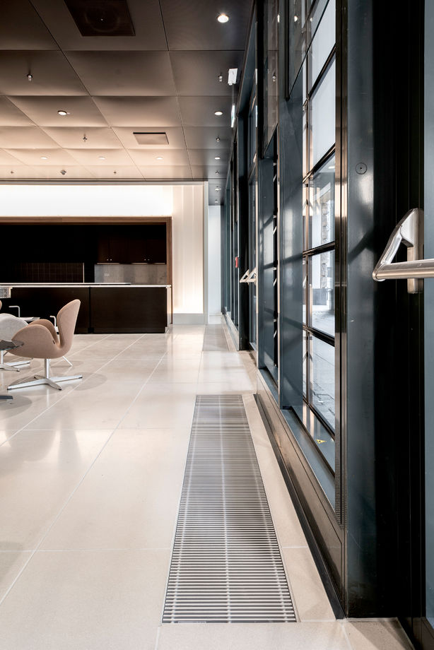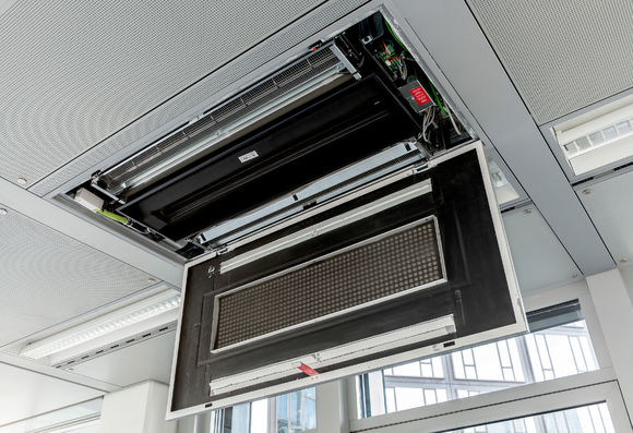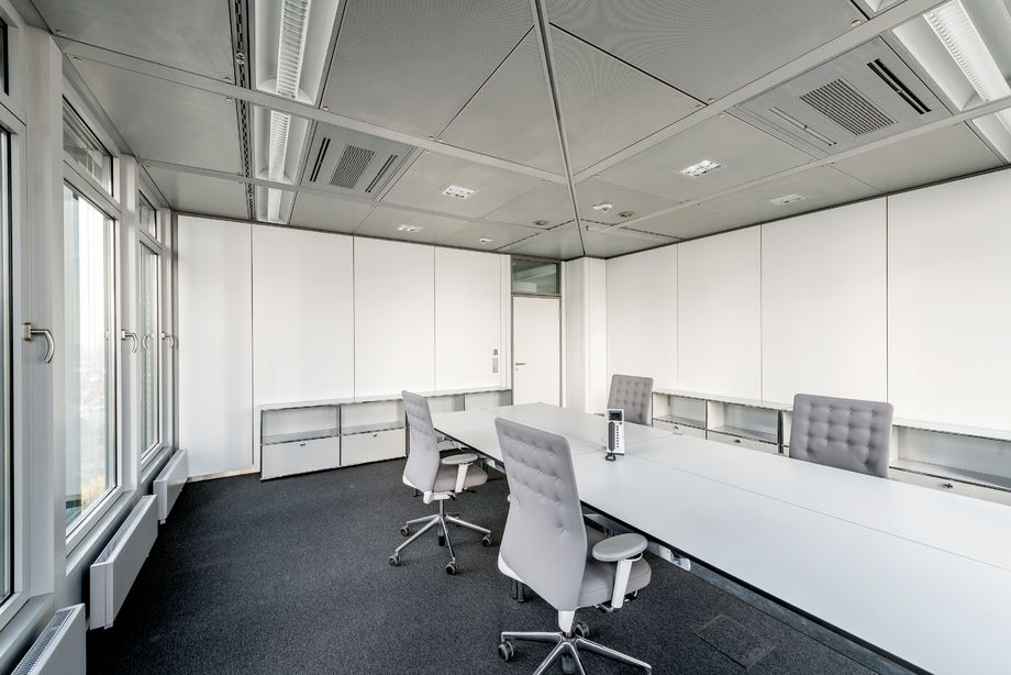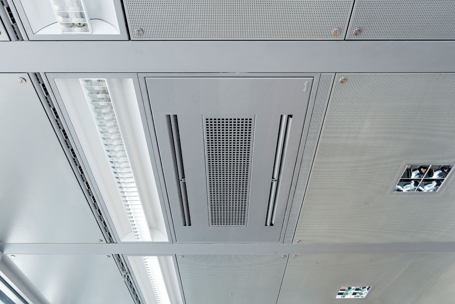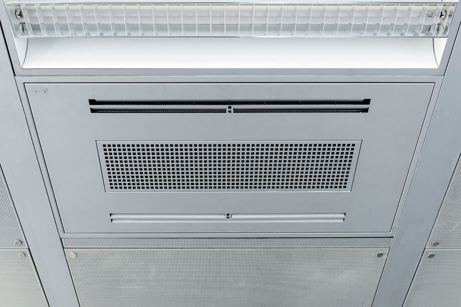 113 Geräte sind über die Etagen des Eurotheums verteilt, 83 davon in Sonderausführung mit projektspezifischen Maßen und Sonderlackierung in RAL 9006 (weißaluminium). Die Fan Coils passen sich so exakt der Farbe der Rasterdecke an. Dank seiner extrem niedrigen Aufbauhöhe von nur 160 Millimetern kann zudem bei der Planung der Zwischendecke Platz gespart werden.