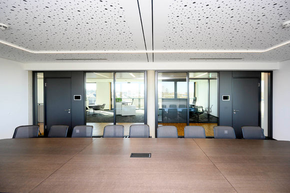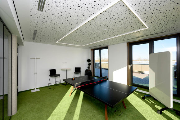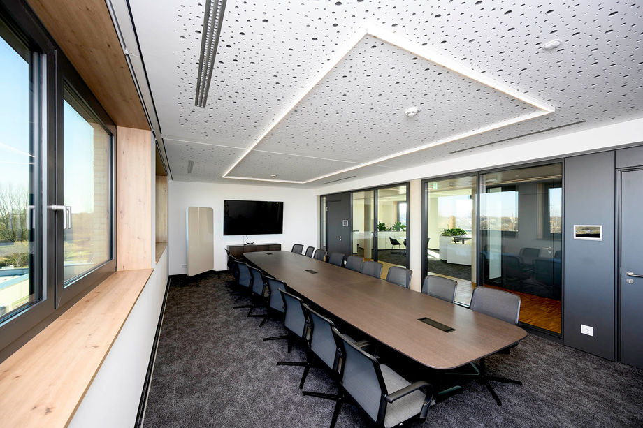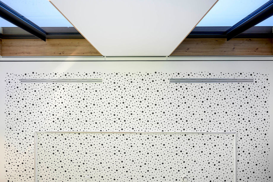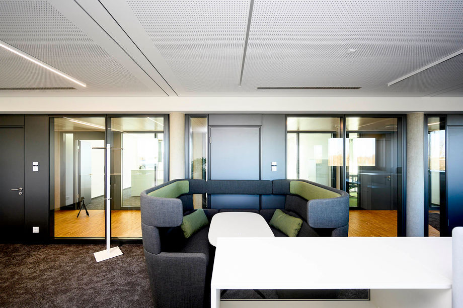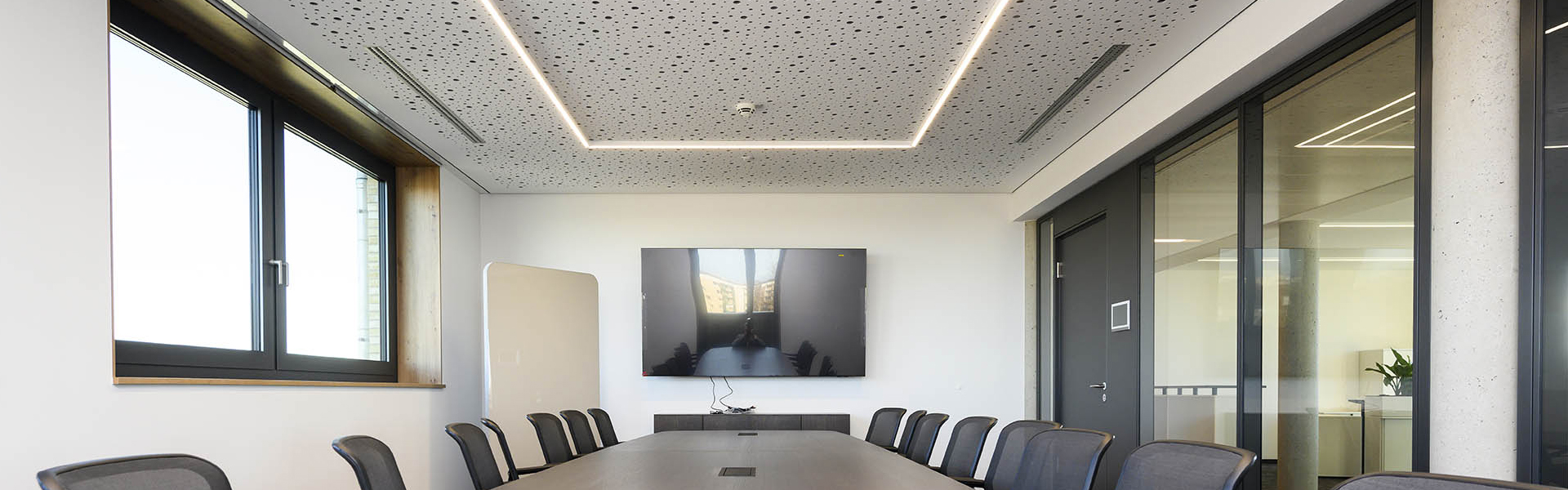Über 1.700 m² installierte Gipskarton-Kühldecke sorgen in der warmen (und immer öfter auch heißen) Jahreszeit für Behaglichkeit. Kampmanns Kühldeckensystem vereint viele Vorteile: Es bietet maximale Freiheit bei der Raumgestaltung, gibt seine Energie absolut zugfrei und geräuschlos ab und bietet zudem eine optimale Raumakustik dank der Akustiklochung bei den montierten Thermo-Gipskartonplatten – eine Lösung, die keine Wünsche offenlässt.