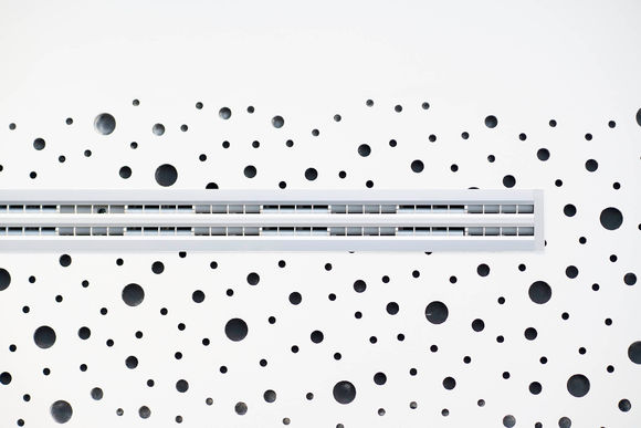 Offen bleiben bei Kampmann auch keine Wünsche in Bezug auf Beratung und Service. Denn eigentlich war Kampmann nur mit der Installation der Kühldecke beauftragt. In einem Gespräch mit dem Bauherren und dem Planer konnte man aber die Vorteile einer Komplettleistung von Kampmann darlegen. Sprich: Auch der Trockenbau mit Unterkonstruktion und Beplankung mit Gipskartonplatten sowie die Lieferung und Montage der Schlitzdurchlässe SAL 35 sind vom Lingener Unternehmen übernommen worden. So vermeidet man Reibungsverluste zwischen den Gewerken, erhält ein perfekt funktionierenden Gesamtsystem aus einer Hand und hat nur einen Ansprechpartner, nämlich Kampmann.