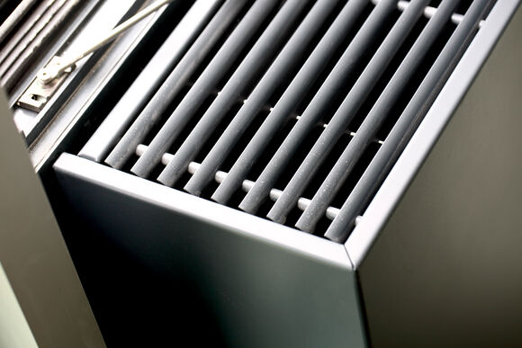 Eine farblich angepasste Pulverbeschichtung der Wandhauben und formschöne Linear-Roste zur Abdeckung fügen sich harmonisch in die Fassadenoptik.
