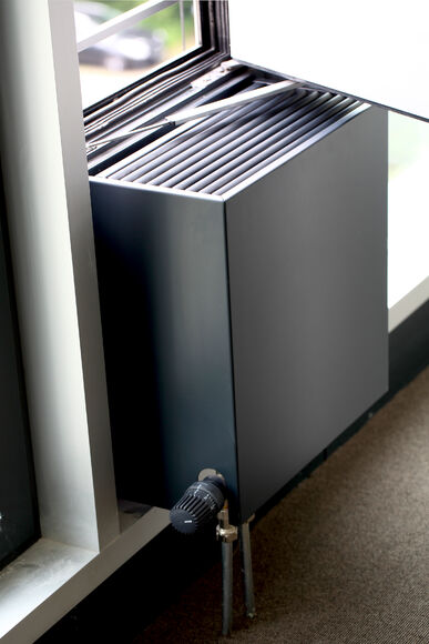 PowerKon + W sind die wandverkleidete Variante der bewährten freistehenden Kampmann Konvektoren. Die Verkleidung mit einteiligen Wandhauben überzeugt neben ihrer Montagefreundlichkeit durch funktionelles Design.
