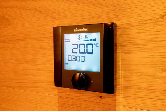 Eine Klimatisierung ist in guten Hotel längst ein ungeschriebener Standard. Und der Fan Coil Venkon von Kampmann hat sich zum Standardgerät entwickelt. Die Gründe dafür liegen auf der Hand. Oder auch im Ohr. Denn der Venkon ist marktführend leise. Eine Eigenschaft, die Gäste sehr schätzen. Zudem ist das Gerät dank EC-Motoren maximal effizient, stufenlos regelbar und lässt sich einfach in eine übergeordnete Gebäudeleittechnik integrieren. Im The Circle regelt der Gast sein individuelles Wohlfühlklima über die Raumautomation KaControl von Kampmann. Die Raumbediengeräte wurden passend zum Zimmerdesign in schwarzer Ausführung geliefert.