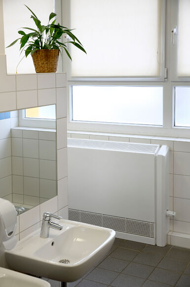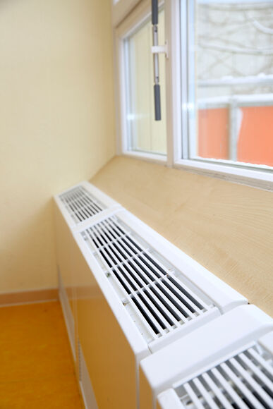 Die im gesamten Gebäude verbauten Konvektoren mit ihren elliptischen Kernrohren aus Stahl sowie den dauerhaft verbundenen Stahllamellen im Inneren sorgen für eine effiziente Wärmeübertragung.