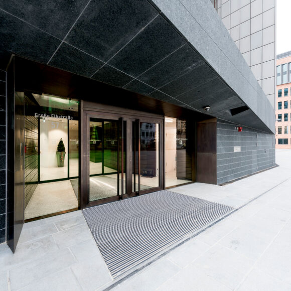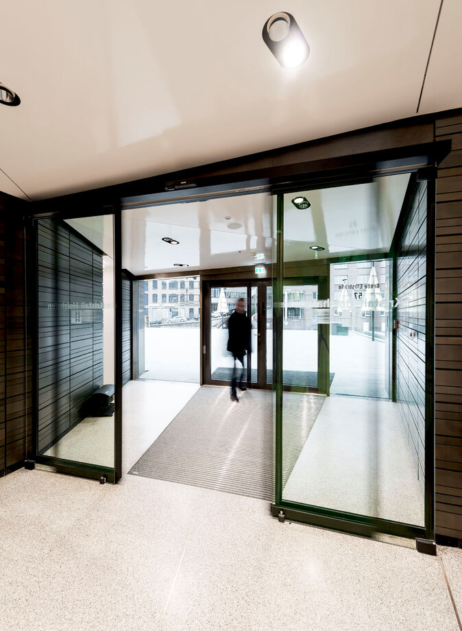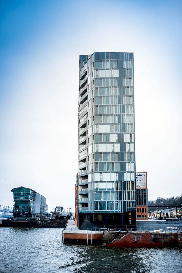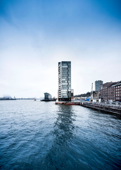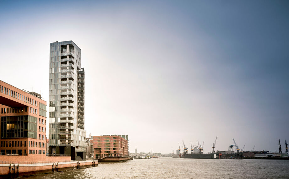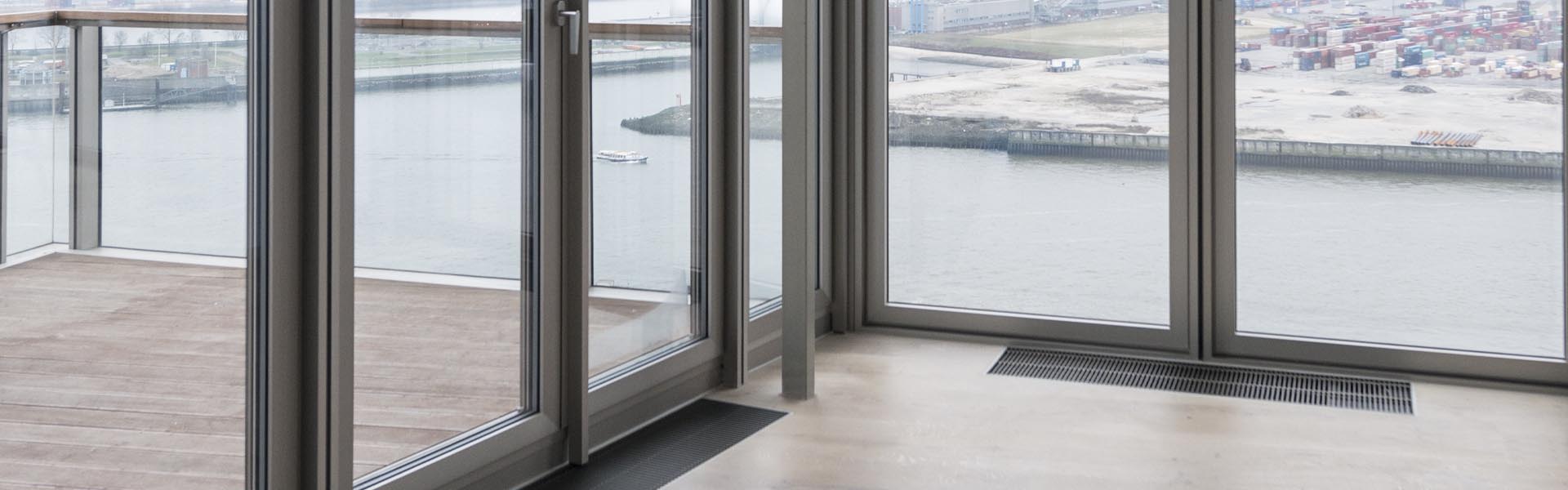 Dezentrales Raumklima aus dem Boden ermöglicht einen freien Blick auf das atemberaubende Panorama des Holzhafens, dem ältesten noch erhaltenen Hafenbecken Hamburgs.