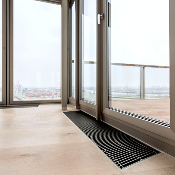 Bodenkanäle Katherm HK zum Heizen oder Kühlen sorgen in allen Wohnungen für eine bedarfsgerechte Zuführung von gefilterter, beheizter oder gekühlter Umluft.