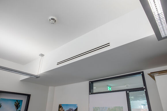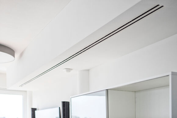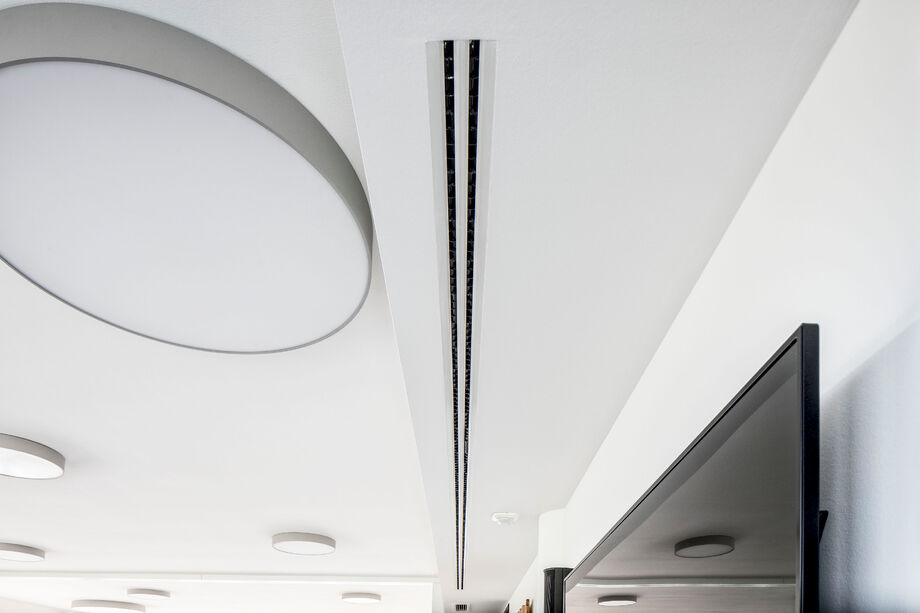 Es sind nur schmale Schlitze in den Wänden, die kaum auffallen – aber tatsächlich sind sie überall: Die 150 KSW, wie die kurze Typenbezeichnung lautet. Der Kampmann KSW ist ein Kombinationsluftdurchlass für Zu- und Abluft in einer Einheit und speziell für den Einbau in leichte Wände geeignet. Er ist der optimale Luftdurchlass für Komfortbereiche mit mittleren Raumhöhen im Heiz- und Kühlfall. Der geringe Schallleistungspegel und der schnelle Temperatur- und Geschwindigkeitsabbau entlang der Strahlachse sorgen für hohe Behaglichkeit.