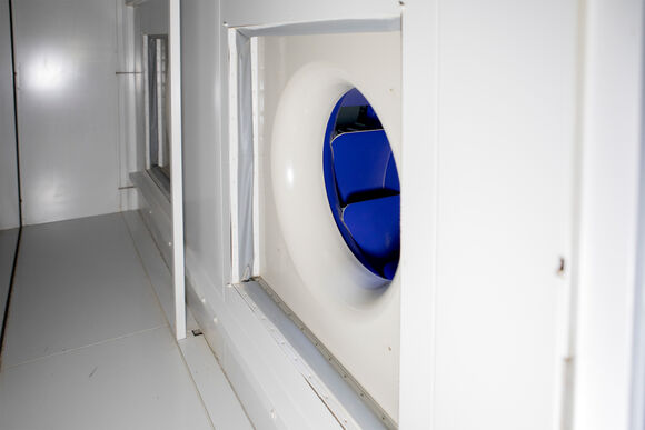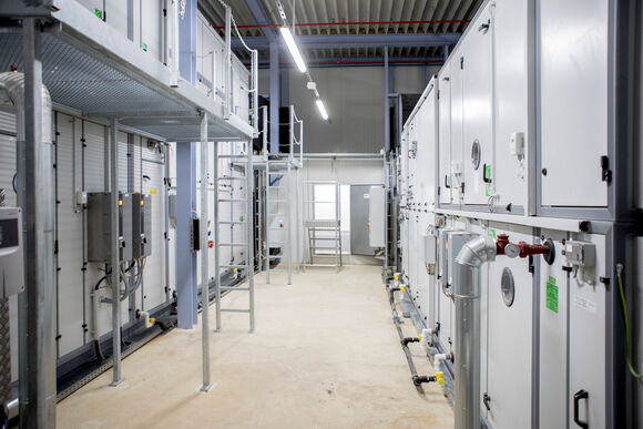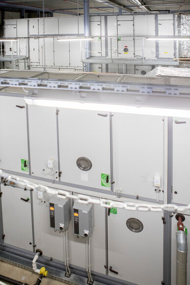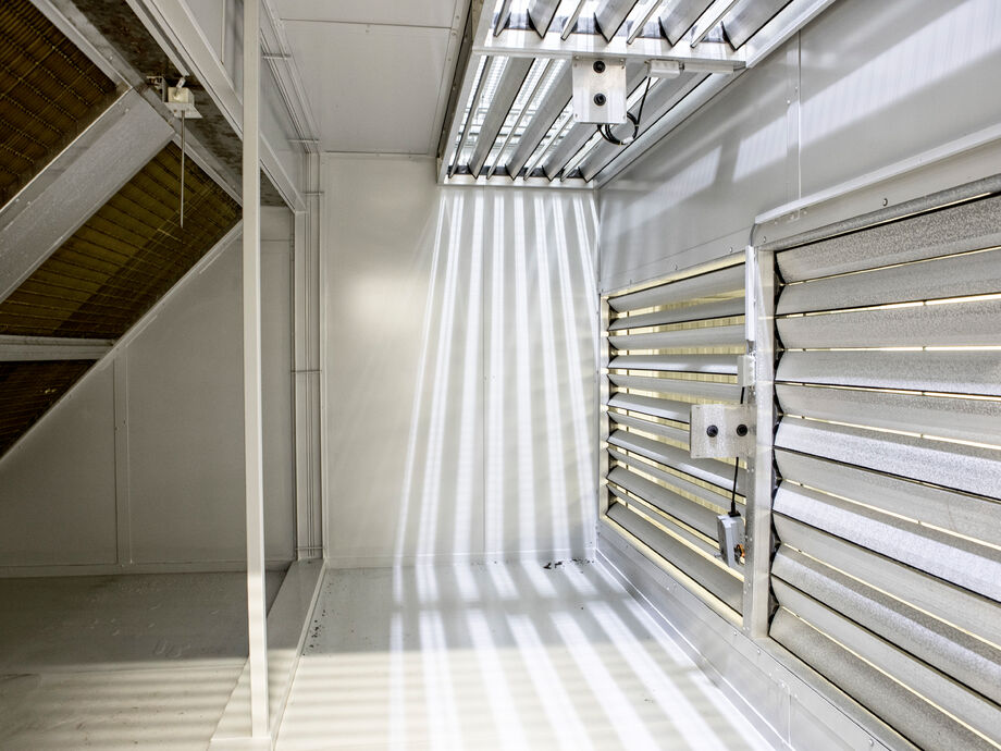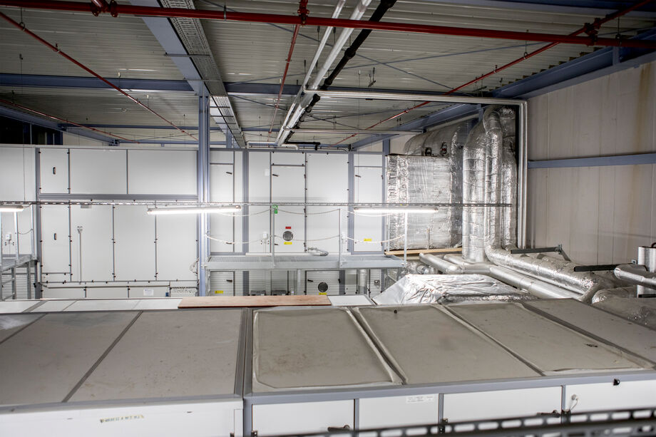 Von den 23 RLT-Geräten sind elf Umluftanlagen. Sie sorgen dafür, dass im nahezu gesamten Gebäudekomplex jene tropischen Temperaturen herrschen, die man in einem Palmenparadies erwartet. Zehn Zu- und Abluftanlagen sind für die Be- und Entlüftung der Schwimmbäder und der Wellness- und Umkleidebereiche zuständig. Diese sind aufgrund der besonderen chemisch-physikalischen Anforderungen grundsätzlich mit einem PU-Lack auf Epoxy-Basis lackiert. Zusätzlich wird ein Großteil der Gerätekonstruktion aus Edelstahl V2A und V4A gefertigt.