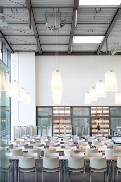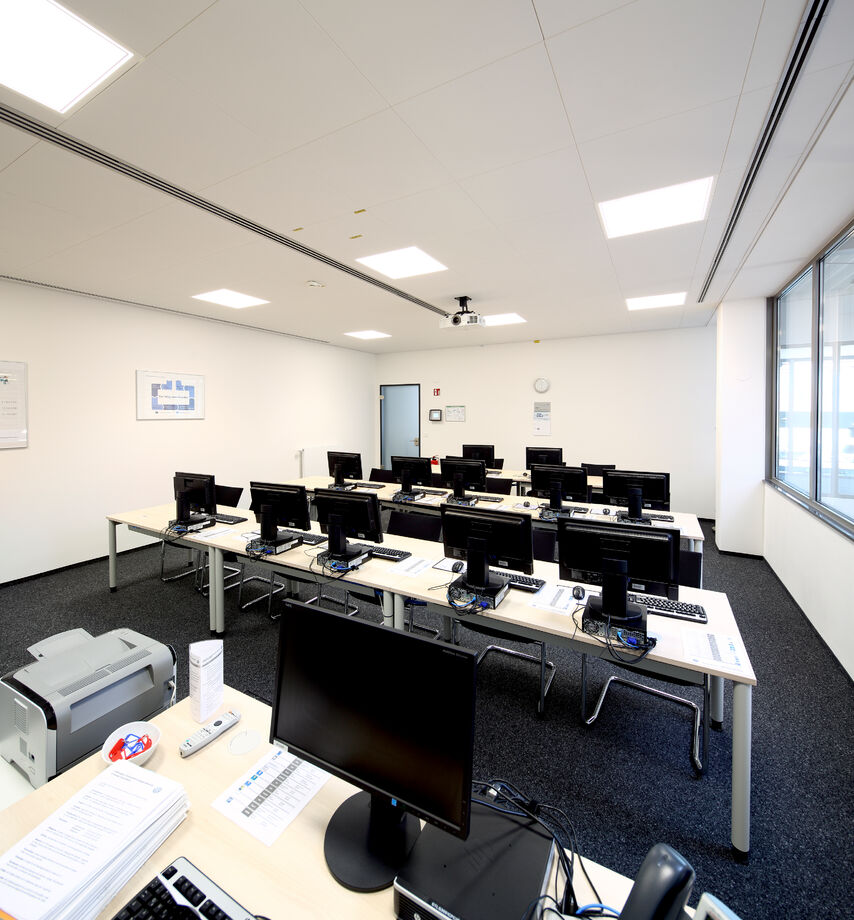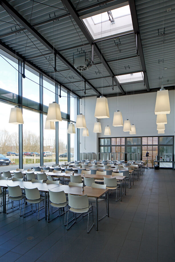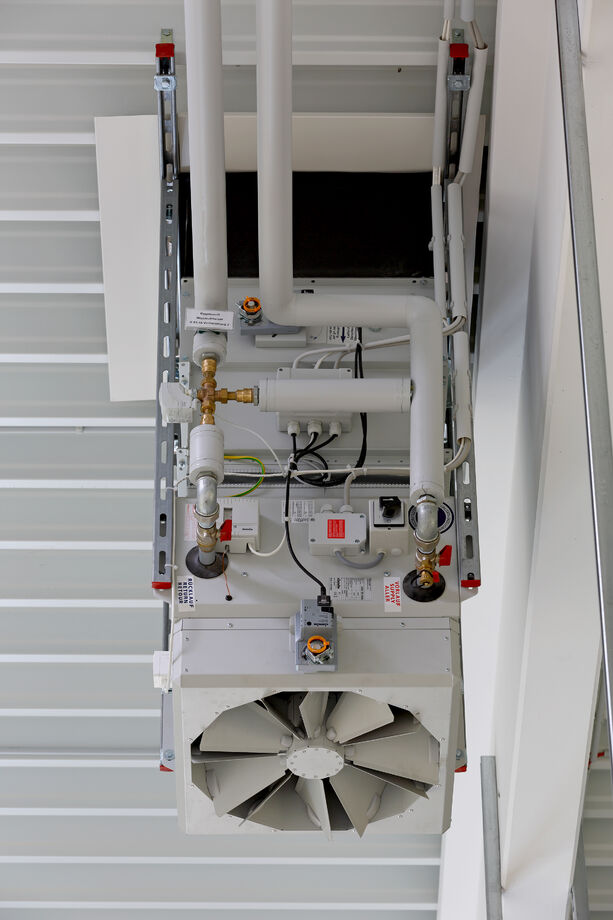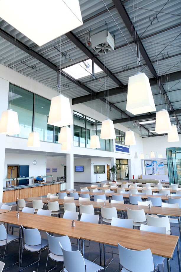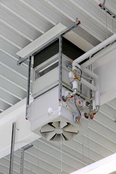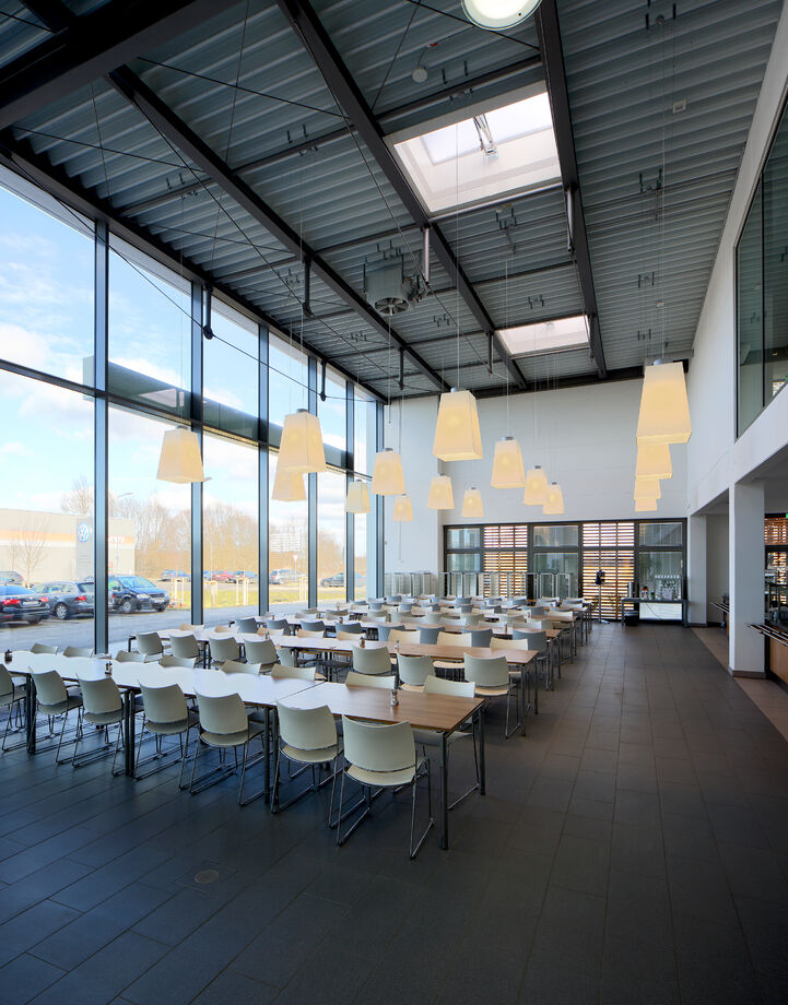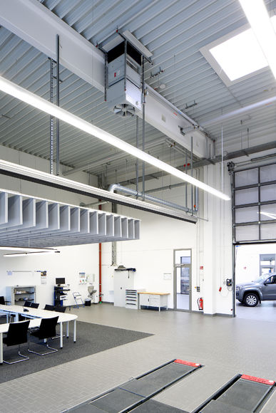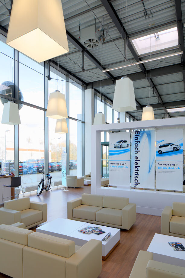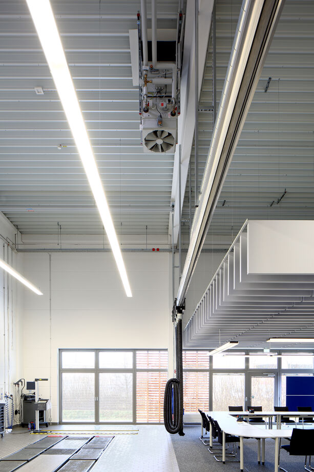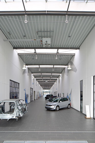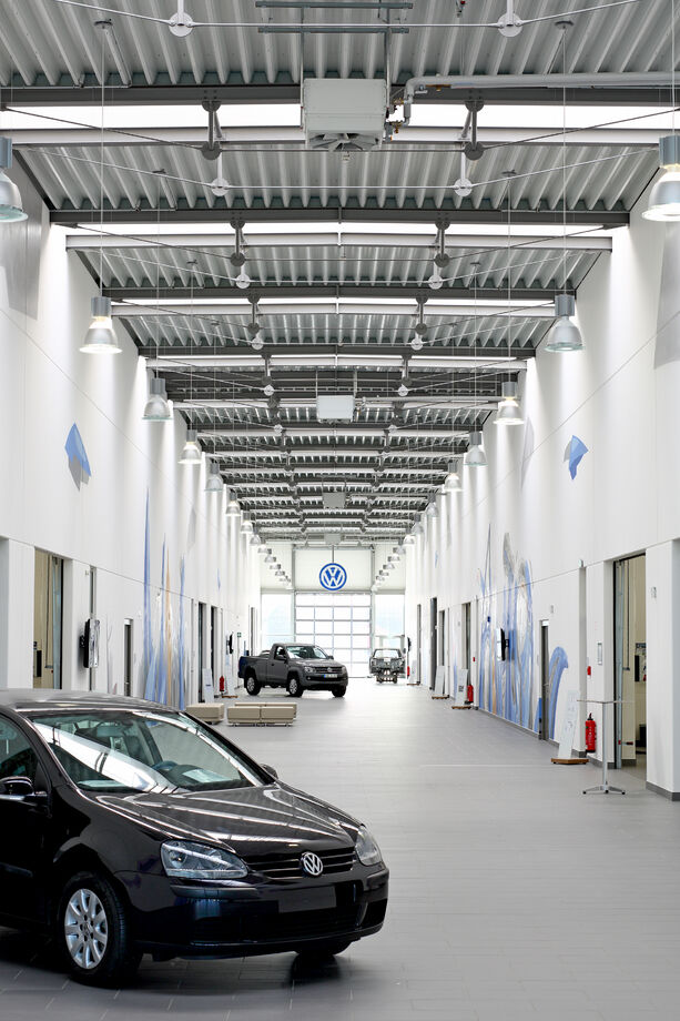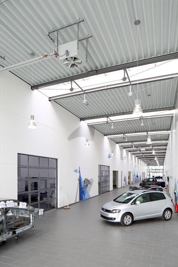 In zehn multifunktionalen Trainingsräumen werden bis zu 6.000 Mitarbeiter aus der Volkswagen Handelsorganisation weitergebildet. In sämtlichen Trainingsräumen sowie im Catering- und Empfangsbereich übernehmen robuste TOP Lufterhitzer die dezentrale Beheizung und Belüftung. In der Ausstattung mit KaMAX Luftauslässen ist für eine konsequente Vermischung der Luft in den hallenhohen Räumlichkeiten gesorgt.