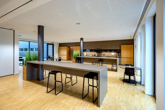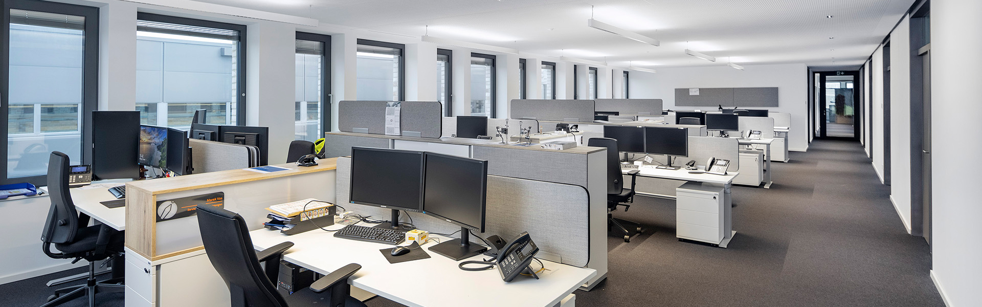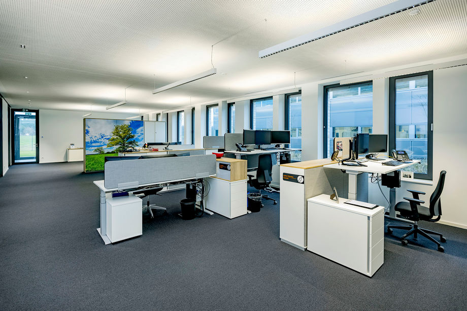 Als Systemanbieter für die TGA sorgt Kampmann bereits bei der Planung und Auslegung dafür, dass alles bestens aufeinander abgestimmt ist. Kampmann stellt als Hersteller umfassende Unterstützung und Beratungsleistung zur Verfügung. Beim Neubau wurde alles nach dem aktuellen Stand der Technik umgesetzt. Bei den Systemen zur Wärme- und Kälteversorgung bzw. -verteilung sowie zur Belüftung lag der Fokus auf maximaler Energieeffizienz. Sämtliche Büro- und Besprechungsräume, die Kantine sowie die Flure wurden mit einer Gipskarton-Heiz-Kühldecke ausgestattet. Sie zeichnet sich durch eine hohe Flexibilität aus.